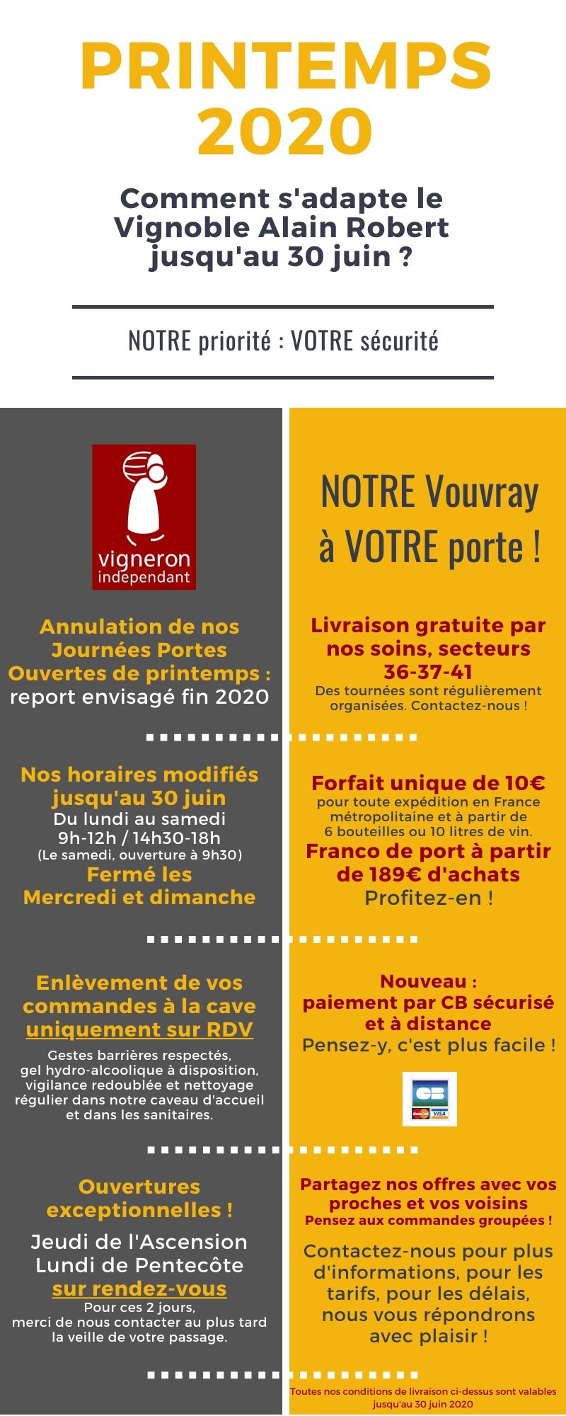 Après l’annonce du déconfinement en date du 11 mai, nous avons rapidement fait le nécessaire dans notre cave pour vous accueillir dans les meilleures conditions, respectueuses des gestes barrière.