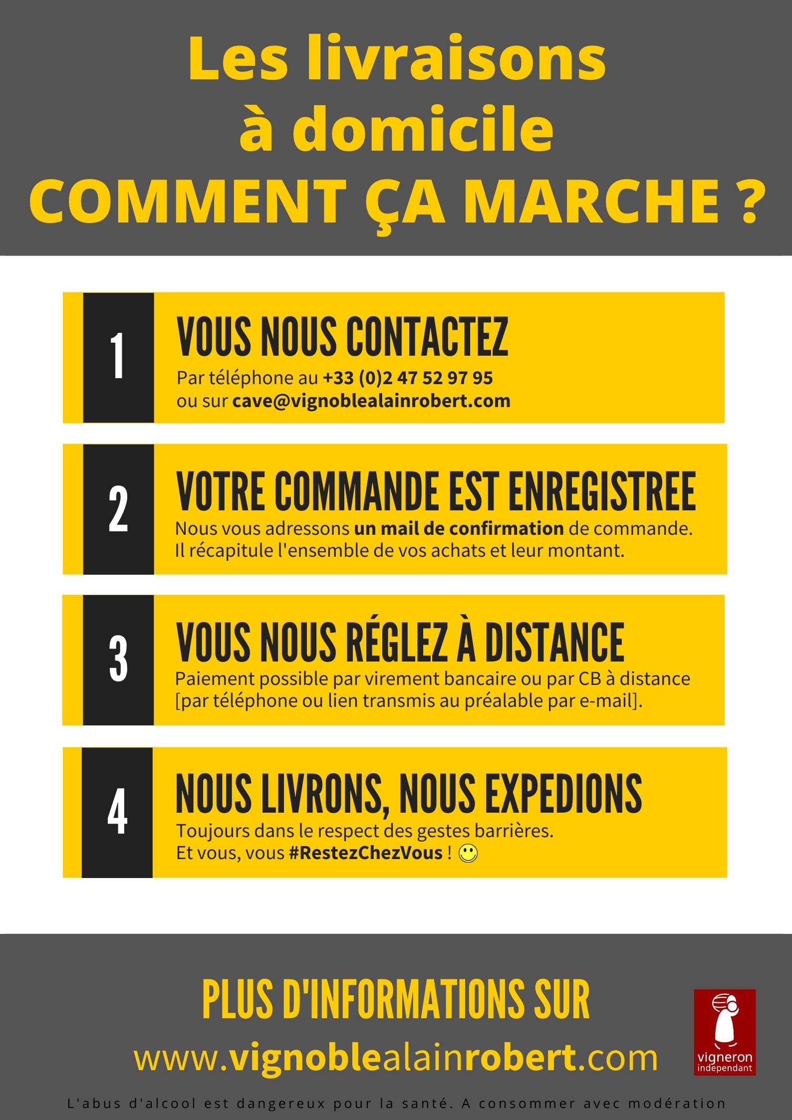 • Ne les cherchez pas : les prix de nos vins ne figurent pas sur notre site internet ! Demandez-les : un p’tit coup de fil, un simple e-mail et hop : le tour est joué !! 😉