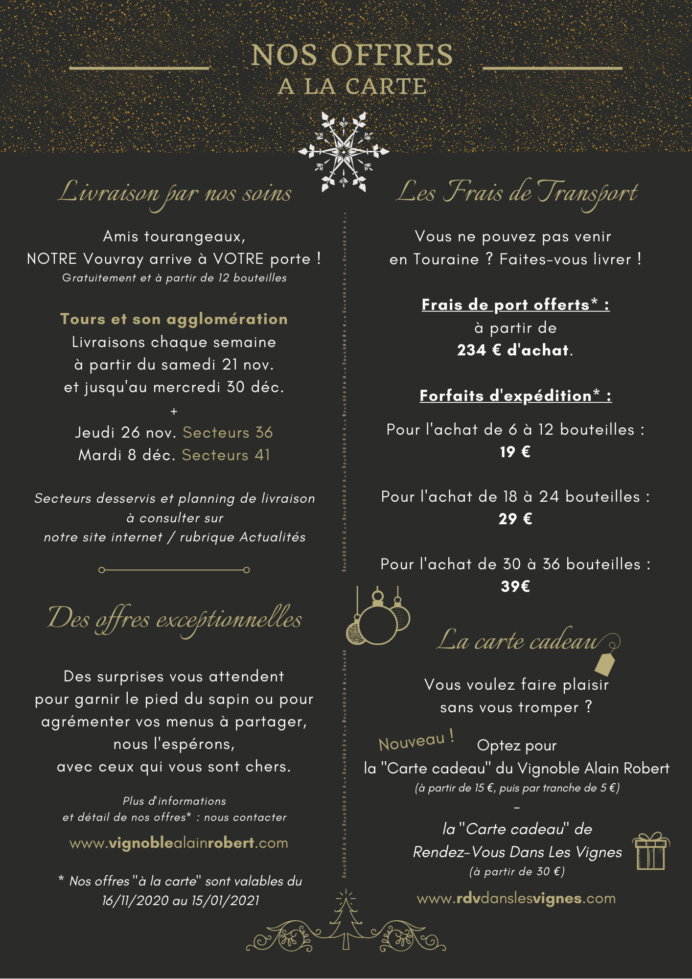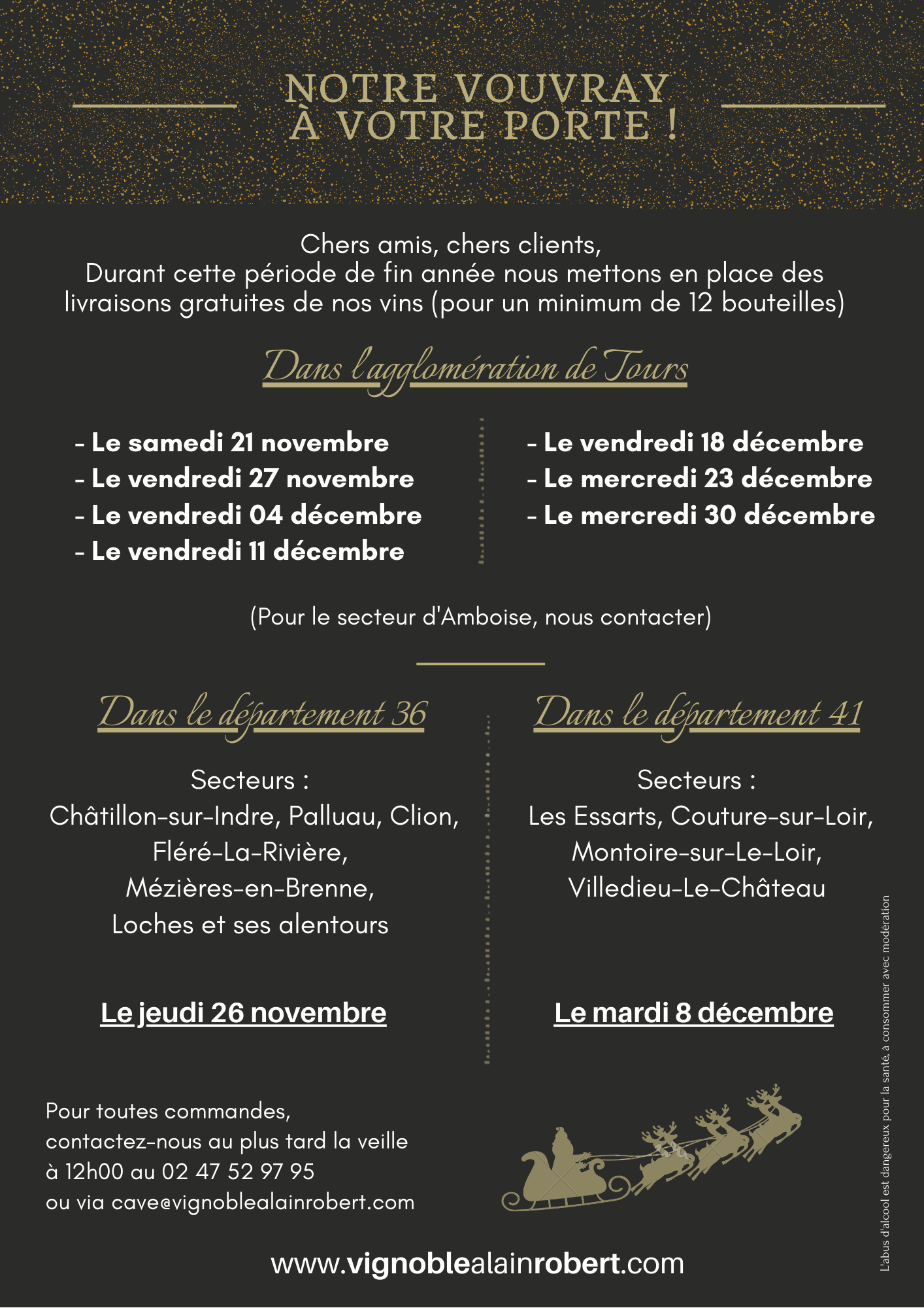 • Livraisons par nos soins, gratuitement et à partir de 12 bouteilles.
