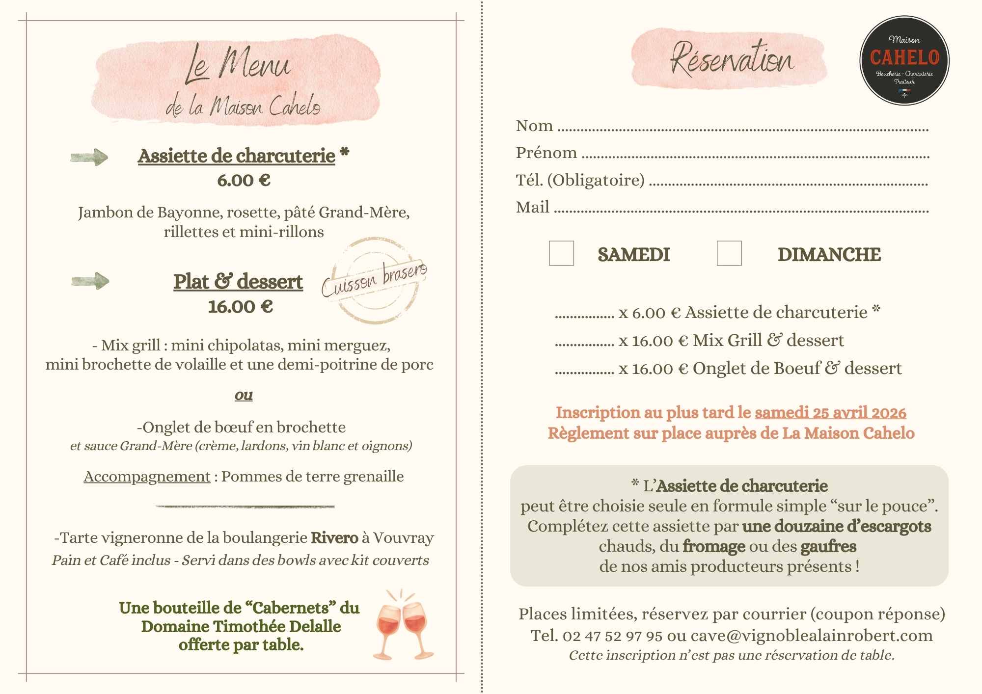 – Restauration sur place : Pause Gourmande proposée par « La Maison Cahelo », (samedi et dimanche, sur réservation par tel ou mail, détail ci-dessous)